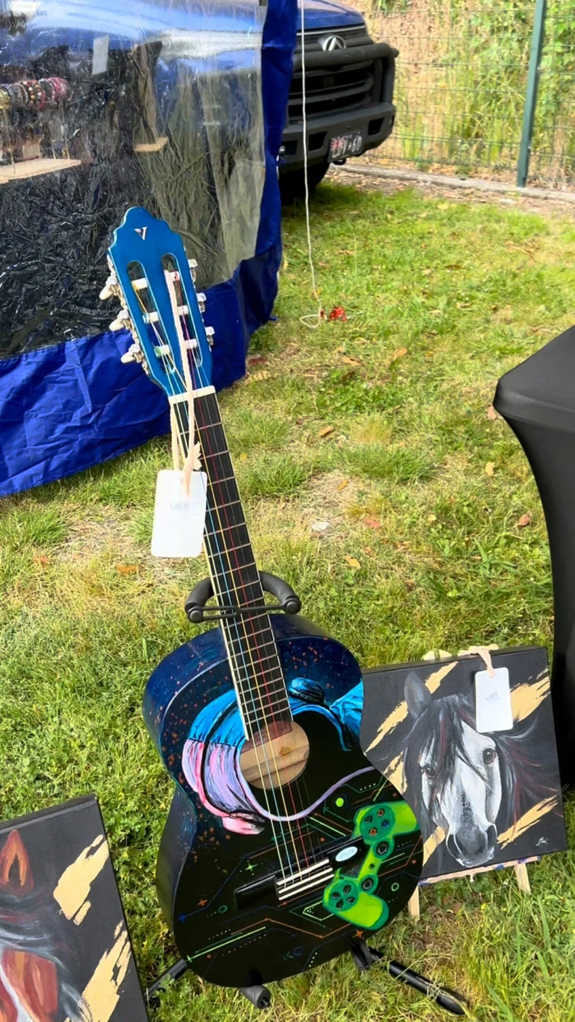 We offer custom-painted saws, feathers, furniture and guitars alongside acrylic or oil-on-canvas paintings and life-sized animal portraits on pine.
