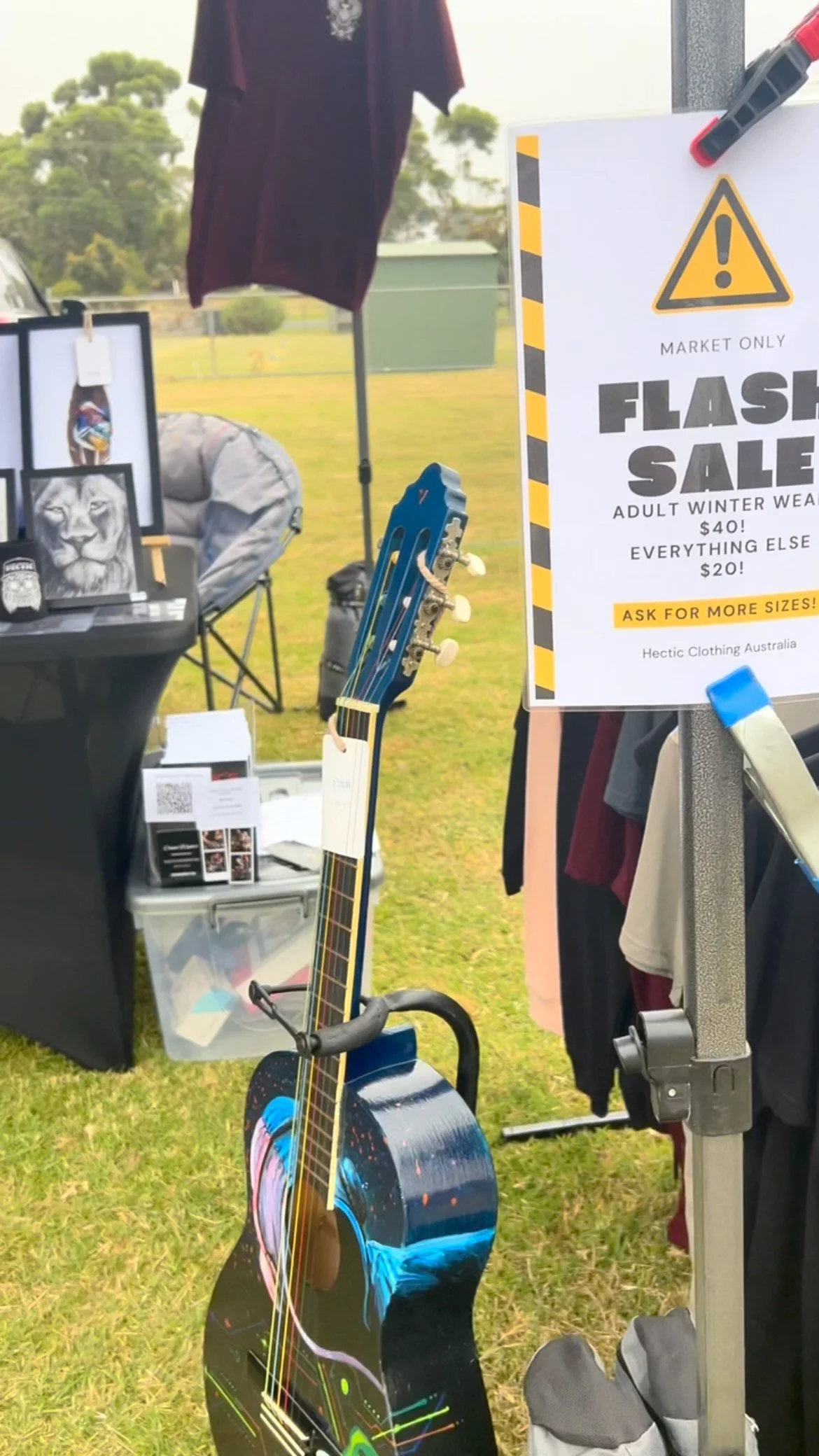We offer custom-painted saws, feathers, furniture and guitars alongside acrylic or oil-on-canvas paintings and life-sized animal portraits on pine.